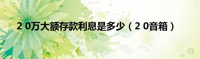大家好,慧慧来为大家解答以上问题,2 0万大额存款利息是多少,2 0音箱很多人还不知道,现在让我们一起来看看吧!