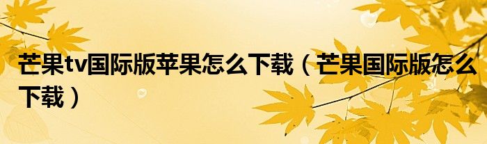 大家好,跳跳为你解答以上问题。芒果tv国际版苹果怎么下载,芒果国际版怎么下载这个问题很多人还不知道,现在让我们一起来看看吧!