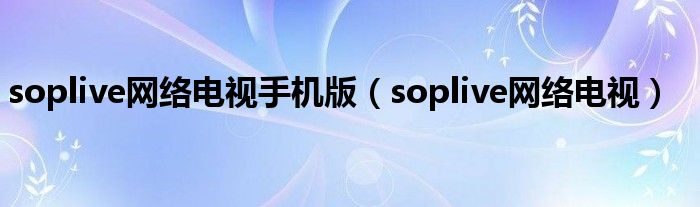大家好,慧慧来为大家解答以上问题,soplive网络电视手机版,soplive网络电视很多人还不知道,现在让我们一起来看看吧!