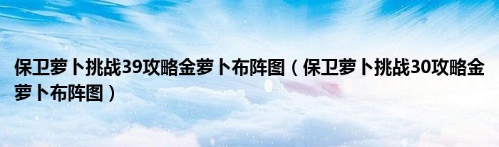 大家好,慧慧来为大家解答以上问题,保卫萝卜挑战39攻略金萝卜布阵图,保卫萝卜挑战30攻略金萝卜布阵图很多人还不知道,现在让我们一起来看看吧!