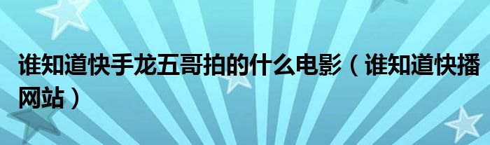 大家好,慧慧来为大家解答以上问题,谁知道快手龙五哥拍的什么电影,谁知道快播网站很多人还不知道,现在让我们一起来看看吧!