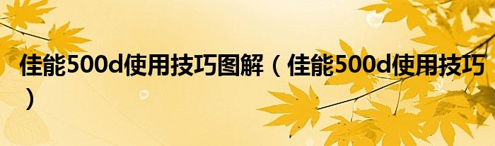 11、以上是佳能500d数码单反相机在使用中的一些技巧。你学会了吗?如果你对佳能单反相机的使用不够了解,那就来学习一下佳能500d数码单反相机在使用过程中的一些技巧吧。相信对你一定有帮助。