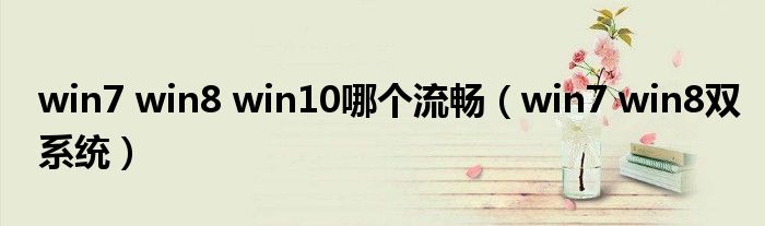 win7 win8 win10哪个流畅(win7 win8双系统)