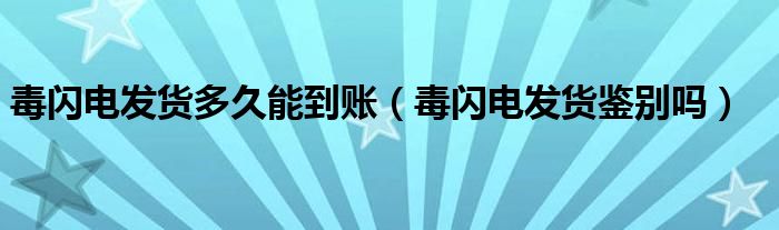 大家好,跳跳为你解答以上问题。毒闪电发货多久能到账,毒闪电发货鉴别吗这个问题很多人还不知道,现在让我们一起来看看吧!