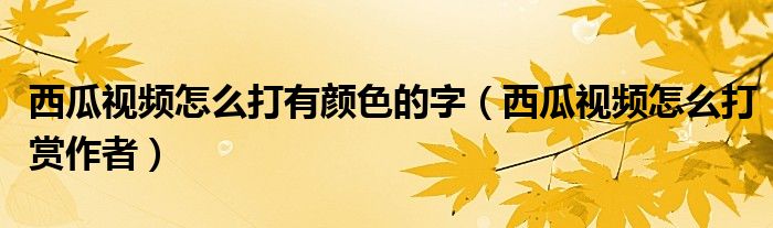 大家好,跳跳为你解答以上问题。西瓜视频怎么打有颜色的字,西瓜视频怎么打赏作者这个问题很多人还不知道,现在让我们一起来看看吧!