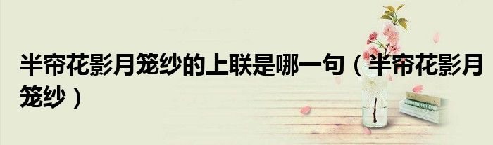 大家好,小晋来为大家解答以下问题,关于半帘花影月笼纱的上联是哪一句,半帘花影月笼纱很多人还不知道,今天让我们一起来看看吧!