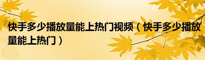 大家好,小晋来为大家解答以下问题,关于快手多少播放量能上热门视频,快手多少播放量能上热门很多人还不知道,今天让我们一起来看看吧!