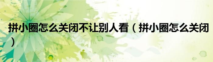 大家好,跳跳为你解答以上问题。拼小圈怎么关闭不让别人看,拼小圈怎么关闭这个问题很多人还不知道,现在让我们一起来看看吧!