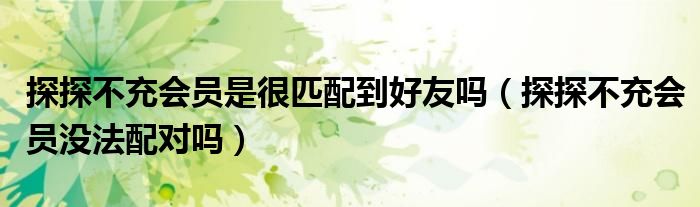 大家好,跳跳为你解答以上问题。探探不充会员是很匹配到好友吗,探探不充会员没法配对吗这个问题很多人还不知道,现在让我们一起来看看吧!