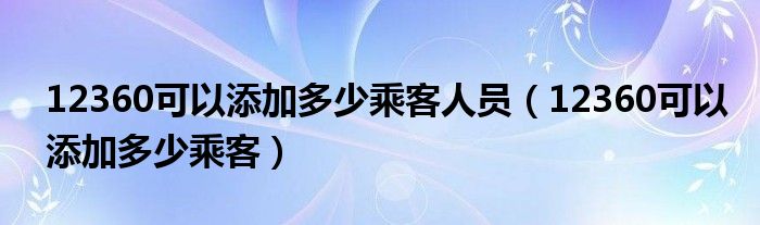 大家好,小晋来为大家解答以下问题,关于12360可以添加多少乘客人员,12360可以添加多少乘客很多人还不知道,今天让我们一起来看看吧!