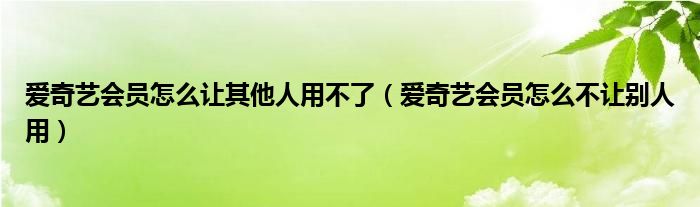 大家好,跳跳为你解答以上问题。爱奇艺会员怎么让其他人用不了,爱奇艺会员怎么不让别人用这个问题很多人还不知道,现在让我们一起来看看吧!