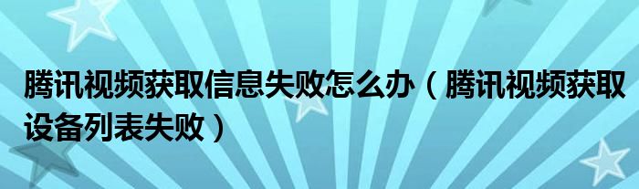 大家好,跳跳为你解答以上问题。腾讯视频获取信息失败怎么办,腾讯视频获取设备列表失败这个问题很多人还不知道,现在让我们一起来看看吧!