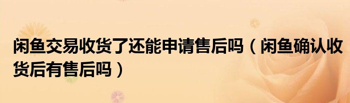 大家好,跳跳为你解答以上问题。闲鱼交易收货了还能申请售后吗,闲鱼确认收货后有售后吗这个问题很多人还不知道,现在让我们一起来看看吧!