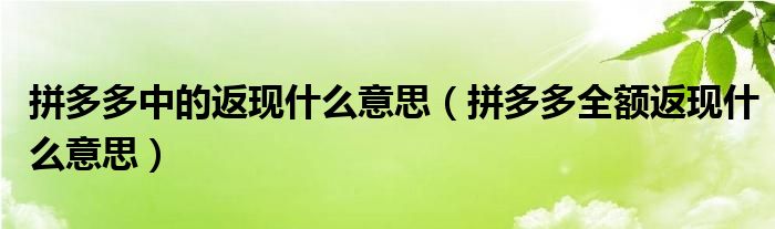 大家好,跳跳为你解答以上问题。拼多多中的返现什么意思,拼多多全额返现什么意思这个问题很多人还不知道,现在让我们一起来看看吧!
