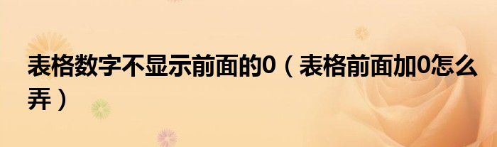 大家好,熊熊为你解答以上问题。表格数字不显示前面的0,表格前面加0怎么弄这个很多人还不知道,现在让我们一起来看看吧!