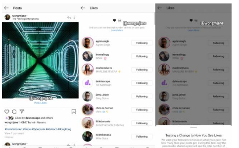 进行这种可能的设计更改的目的是为了减少人们喜欢帖子的“群居心态”,因为很多其他人已经喜欢它了。当与其他创作者比较喜欢的人数时,它也可能会影响用户的激烈竞争,尤其是那些争夺眼球和品牌的网红。一些用户甚至删除不会获得太多喜欢的帖子,因为这会影响到他们的自尊,因为他们看到某个帖子没有得到足够的爱。