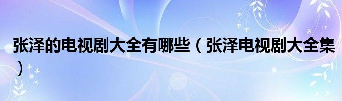 大家好,小晋来为大家解答以下问题,关于张泽的电视剧大全有哪些,张泽电视剧大全集很多人还不知道,今天让我们一起来看看吧!