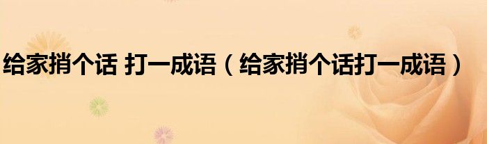 大家好,小晋来为大家解答以下问题,关于给家捎个话 打一成语,给家捎个话打一成语很多人还不知道,今天让我们一起来看看吧!