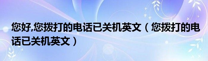 大家好,小晋来为大家解答以下问题,关于您好,您拨打的电话已关机英文,您拨打的电话已关机英文很多人还不知道,今天让我们一起来看看吧!