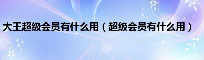 大家好,小晋来为大家解答以下问题,关于大王超级会员有什么用,超级会员有什么用很多人还不知道,今天让我们一起来看看吧!