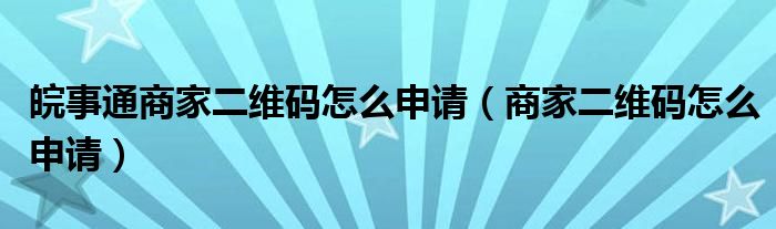 皖事通商家二维码怎么申请(商家二维码怎么申请)