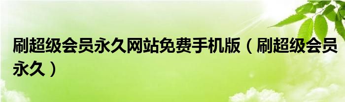 刷超级会员永久网站免费手机版(刷超级会员永久)