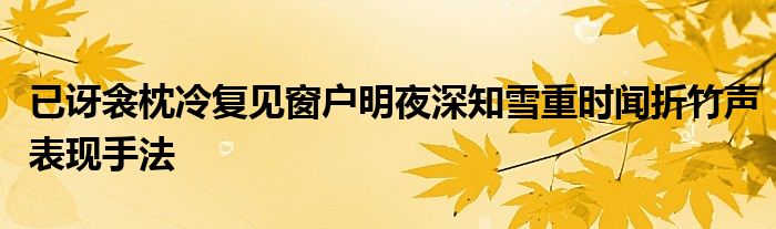 关于已讶衾枕冷复见窗户明夜深知雪重时闻折竹声表现手法这个很多人还不知道,今天菲菲来为大家解答以上的问题,现在让我们一起来看看吧!