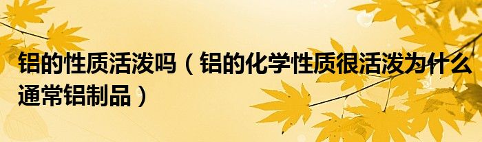 关于铝的性质活泼吗,铝的化学性质很活泼为什么通常铝制品这个很多人还不知道,今天菲菲来为大家解答以上的问题,现在让我们一起来看看吧!