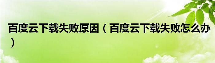 关于百度云下载失败原因,百度云下载失败怎么办这个很多人还不知道,今天菲菲来为大家解答以上的问题,现在让我们一起来看看吧!