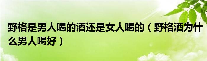 野格是男人喝的酒还是女人喝的(野格酒为什么男人喝好)