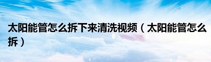 大家好,小晋来为大家解答以下问题,关于太阳能管怎么拆下来清洗视频,太阳能管怎么拆很多人还不知道,今天让我们一起来看看吧!