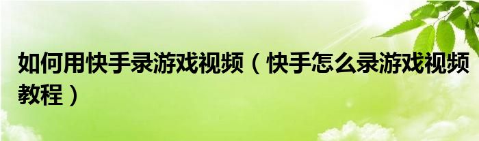 大家好,小晋来为大家解答以下问题,关于如何用快手录游戏视频,快手怎么录游戏视频教程很多人还不知道,今天让我们一起来看看吧!