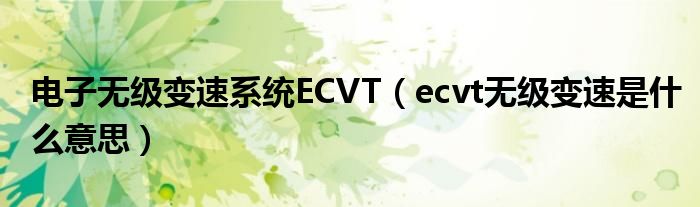 大家好,小晋来为大家解答以下问题,关于电子无级变速系统ECVT,ecvt无级变速是什么意思很多人还不知道,今天让我们一起来看看吧!