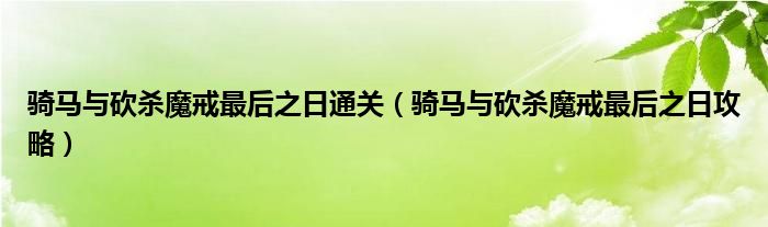 骑马与砍杀魔戒最后之日通关(骑马与砍杀魔戒最后之日攻略)