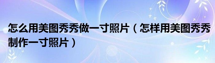关于怎么用美图秀秀做一寸照片,怎样用美图秀秀制作一寸照片这个很多人还不知道,今天菲菲来为大家解答以上的问题,现在让我们一起来看看吧!