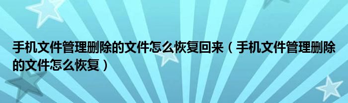 关于手机文件管理删除的文件怎么恢复回来,手机文件管理删除的文件怎么恢复这个很多人还不知道,今天菲菲来为大家解答以上的问题,现在让我们一起来看看吧!