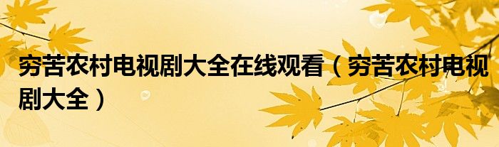 关于穷苦农村电视剧大全在线观看,穷苦农村电视剧大全这个很多人还不知道,今天菲菲来为大家解答以上的问题,现在让我们一起来看看吧!