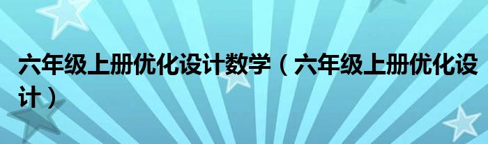 六年级上册优化设计数学(六年级上册优化设计)