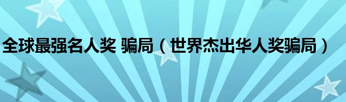 全球最强名人奖 骗局(世界杰出华人奖骗局)