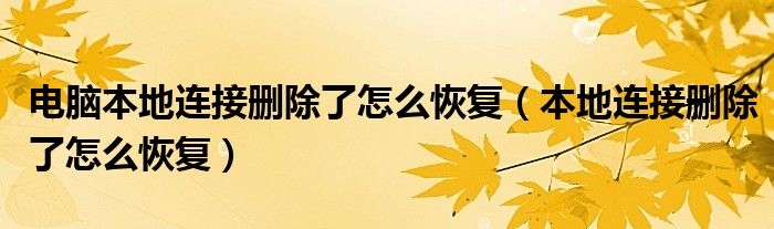 大家好,小晋来为大家解答以下问题,关于电脑本地连接删除了怎么恢复,本地连接删除了怎么恢复很多人还不知道,今天让我们一起来看看吧!