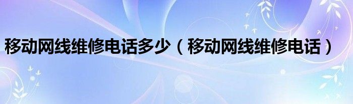 大家好,小晋来为大家解答以下问题,关于移动网线维修电话多少,移动网线维修电话很多人还不知道,今天让我们一起来看看吧!