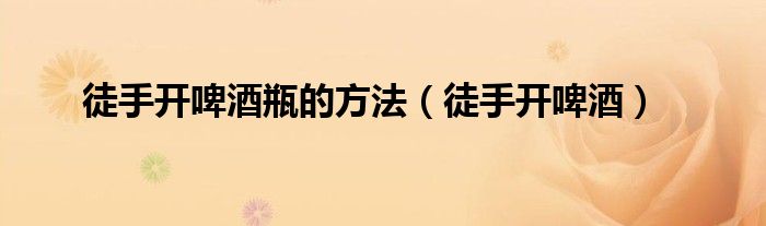 大家好,小晋来为大家解答以下问题,关于徒手开啤酒瓶的方法,徒手开啤酒很多人还不知道,今天让我们一起来看看吧!