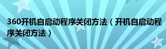 大家好,小晋来为大家解答以下问题,关于360开机自启动程序关闭方法,开机自启动程序关闭方法很多人还不知道,今天让我们一起来看看吧!