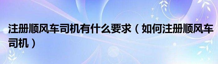 关于注册顺风车司机有什么要求,如何注册顺风车司机这个很多人还不知道,今天菲菲来为大家解答以上的问题,现在让我们一起来看看吧!