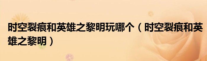 大家好,来宝来为大家解答以下问题,时空裂痕和英雄之黎明玩哪个,时空裂痕和英雄之黎明很多人还不知道,今天让我们一起来看看吧!