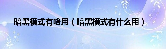 大家好,来宝来为大家解答以下问题,暗黑模式有啥用,暗黑模式有什么用很多人还不知道,今天让我们一起来看看吧!