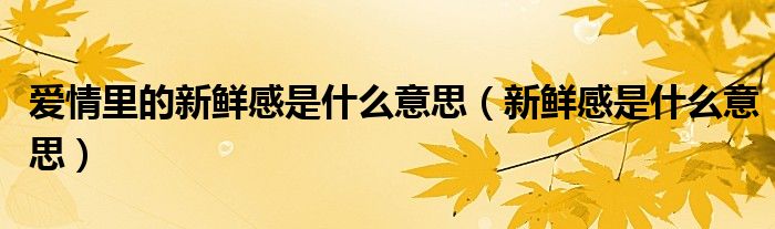 关于爱情里的新鲜感是什么意思,新鲜感是什么意思这个很多人还不知道,今天菲菲来为大家解答以上的问题,现在让我们一起来看看吧!