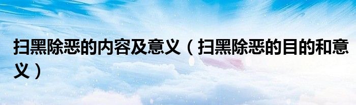 大家好,小晋来为大家解答以下问题,关于扫黑除恶的内容及意义,扫黑除恶的目的和意义很多人还不知道,今天让我们一起来看看吧!
