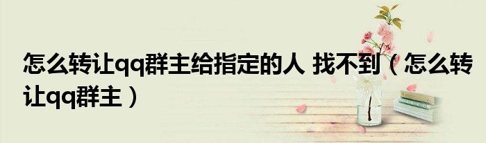 大家好,小晋来为大家解答以下问题,关于怎么转让qq群主给指定的人 找不到,怎么转让qq群主很多人还不知道,今天让我们一起来看看吧!