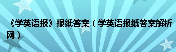 关于《学英语报》报纸答案,学英语报纸答案解析网这个很多人还不知道,今天菲菲来为大家解答以上的问题,现在让我们一起来看看吧!